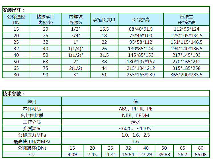 本產(chǎn)品民用系列選用國際通用型食品級工程塑料(ABS、PP-R、PE等)注造。工業(yè)用系列選用進(jìn)口阻燃型高強(qiáng)度工程塑料(PC等)注造。產(chǎn)品具有重量輕、耐腐蝕、不生銹、不結(jié)垢、導(dǎo)冷不結(jié)霜、導(dǎo)熱系數(shù)低,絕緣性能好,環(huán)保衛(wèi)生等優(yōu)點。啟閉原理上:采用浮動閥芯,利用流體壓力差,誘導(dǎo)式啟閉的專利技術(shù)成果。因啟閉時無磨損(屬接觸型啟閉),而解決了傳統(tǒng)閥門因強(qiáng)制性啟閉而造成的啟閉部件和密封件磨損所引起的“跑、冒、滴、漏”的歷史性難題。它具有安裝使用方便,節(jié)能節(jié)水效果顯著(可節(jié)約傳統(tǒng)閥門的外泄內(nèi)漏所浪費掉的水),使用壽命長及物美價廉等特點。