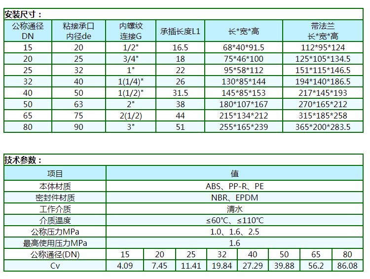 本產(chǎn)品民用系列選用國(guó)際通用型食品級(jí)工程塑料(ABS、PP-R、PE等)注造。工業(yè)用系列選用進(jìn)口阻燃型高強(qiáng)度工程塑料(PC等)注造。產(chǎn)品具有重量輕、耐腐蝕、不生銹、不結(jié)垢、導(dǎo)冷不結(jié)霜、導(dǎo)熱系數(shù)低,絕緣性能好,環(huán)保衛(wèi)生等優(yōu)點(diǎn)。啟閉原理上:采用浮動(dòng)閥芯,利用流體壓力差,誘導(dǎo)式啟閉的專利技術(shù)成果。因啟閉時(shí)無(wú)磨損(屬接觸型啟閉),而解決了傳統(tǒng)閥門(mén)因強(qiáng)制性啟閉而造成的啟閉部件和密封件磨損所引起的“跑、冒、滴、漏”的歷史性難題。它具有安裝使用方便,節(jié)能節(jié)水效果顯著(可節(jié)約傳統(tǒng)閥門(mén)的外泄內(nèi)漏所浪費(fèi)掉的水),使用壽命長(zhǎng)及物美價(jià)廉等特點(diǎn)。