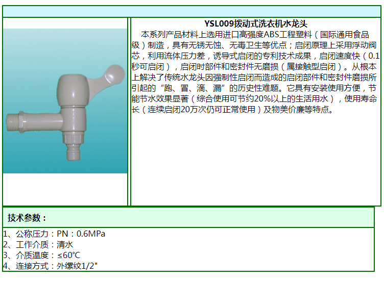【產(chǎn)品型號】YSL009撥動式洗衣機(jī)水龍頭