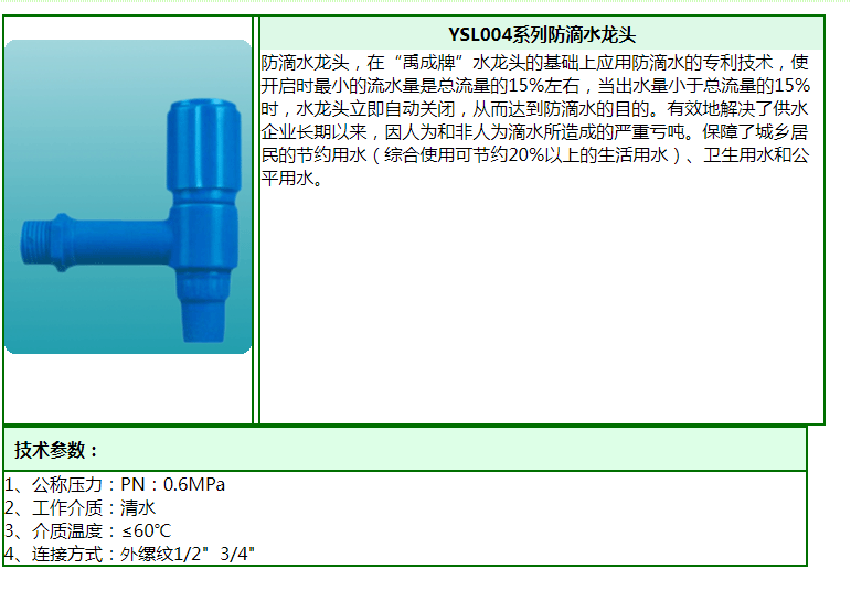 【產(chǎn)品型號(hào)】YSL004系列防滴水龍頭