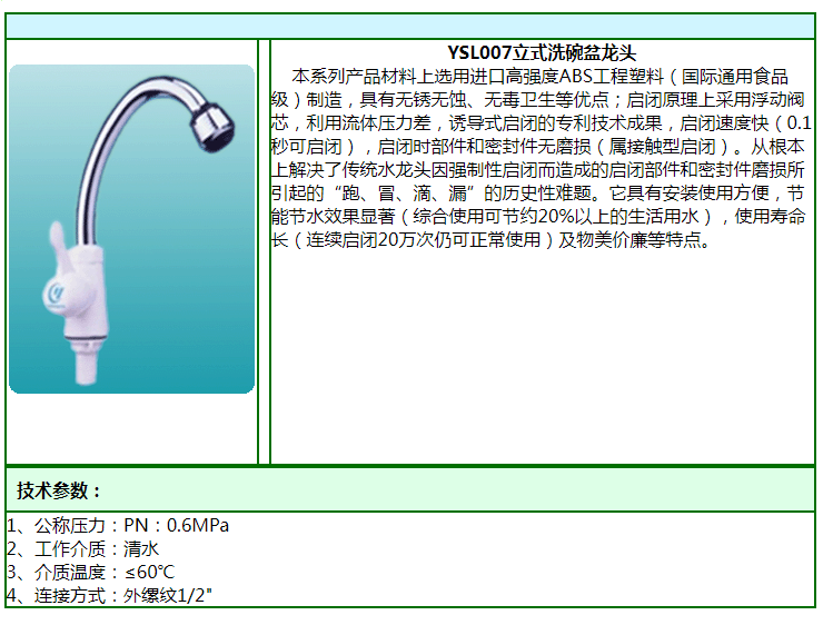 【產(chǎn)品型號(hào)】YSL007立式洗碗盆龍頭
